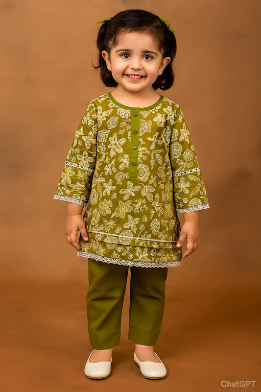 Olive green 2 PC Lawn suit (BFT-005)