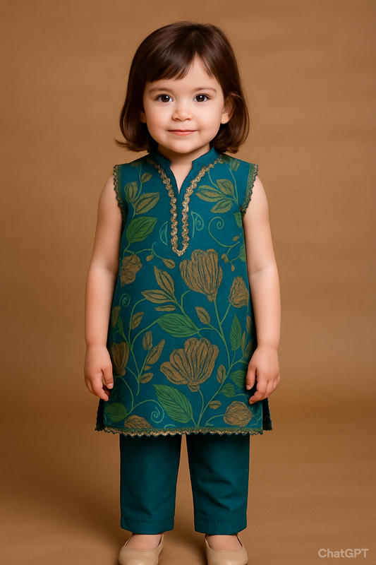 Pastel green and pink 2 PC Lawnsuit (BFT-006)